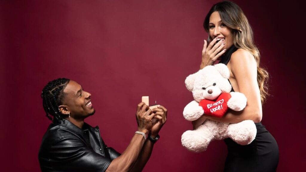 O pedido, cuidadosamente preparado por PA, foi registrado em detalhes e viralizou. Um quarto decorado com balões vermelhos, pétalas de rosa sobre a cama e um letreiro iluminado com a frase “Namora comigo?” foram o cenário da surpresa. Para completar o clima romântico, o ex-BBB presenteou Thays com um anel, arrancando suspiros e aplausos da web. “Momento inesquecível”, escreveram fãs emocionados.